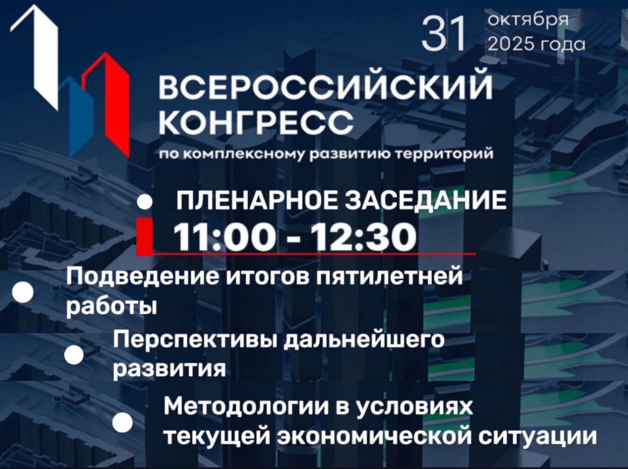 Центральным событием Конгресса станет пленарное заседание, где будут глубоко проанализированы ключевые стратегии и вызовы в функционировании института комплексного развития территорий.