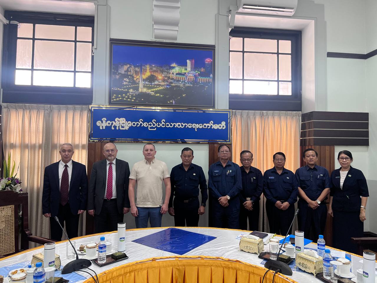 В рамках рабочей поездки руководителя ВЦНСП в Республику Союз Мьянма совместно с представителями Посольства и Торгпредства Российской Федерации состоялась встреча с господином У Ньи-Ньи, заместителем председателя (вице-мэром) Комитета по развитию города Янгон, а также с руководителями профильных подразделений аппарата Комитета.